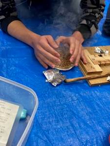 ・久しぶりに職場の子ども達とやってみた。火種はアルミ箔で移している。